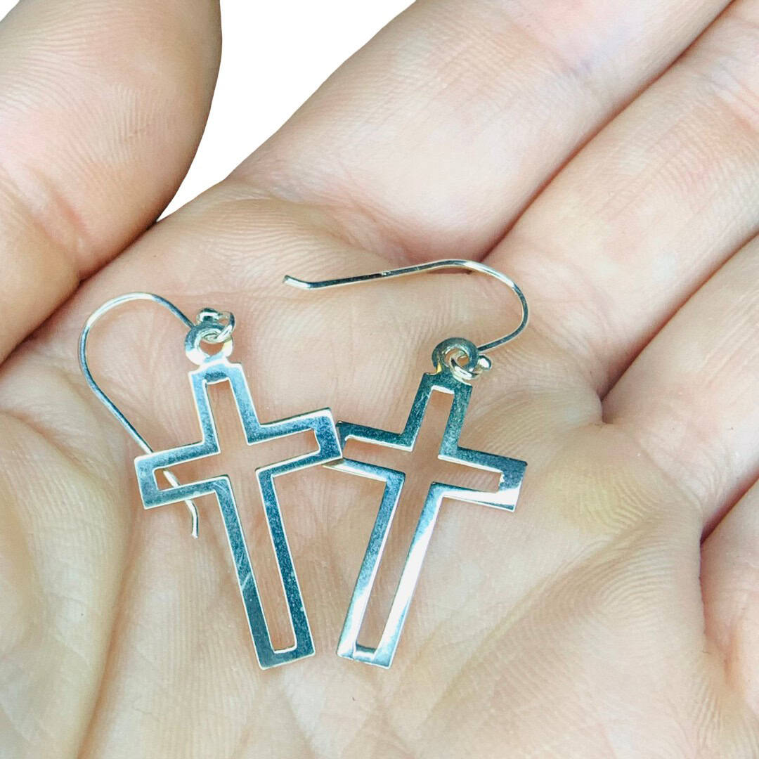 Estos elegantes aros de plata 925 presentan un diseño de cruz calada con un estilo minimalista y moderno, ideal para quienes buscan una joya con significado y sofisticación. Su estructura ligera y el acabado pulido de alta calidad resaltan la silueta de la cruz, mientras que su formato colgante con gancho aporta un movimiento delicado que enmarca el rostro con sutileza. Gracias a su estética atemporal y femenina, son el accesorio perfecto para complementar cualquier look, desde el uso diario hasta ocasiones más especiales, manteniendo siempre un aire de distinción profesional.