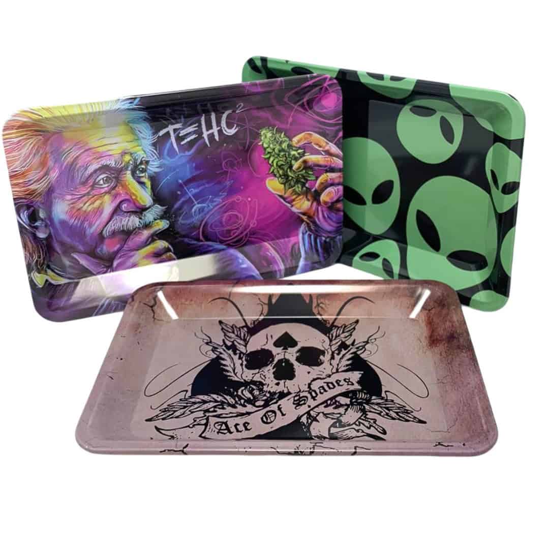 Estas bandejas metálicas de Tammy’s son el accesorio esencial para mantener tu espacio organizado con un toque de estilo único y audaz. Fabricadas con metal de alta resistencia y bordes redondeados para evitar desperdicios, destacan por su gran variedad de diseños artísticos que van desde ilustraciones psicodélicas de personajes icónicos hasta patrones temáticos de alienígenas y calaveras. Su superficie lisa y duradera facilita la limpieza y el manejo de tus accesorios, convirtiéndolas en una pieza funcional y decorativa ideal para cualquier coleccionista que busca calidad y diseño en un solo producto.