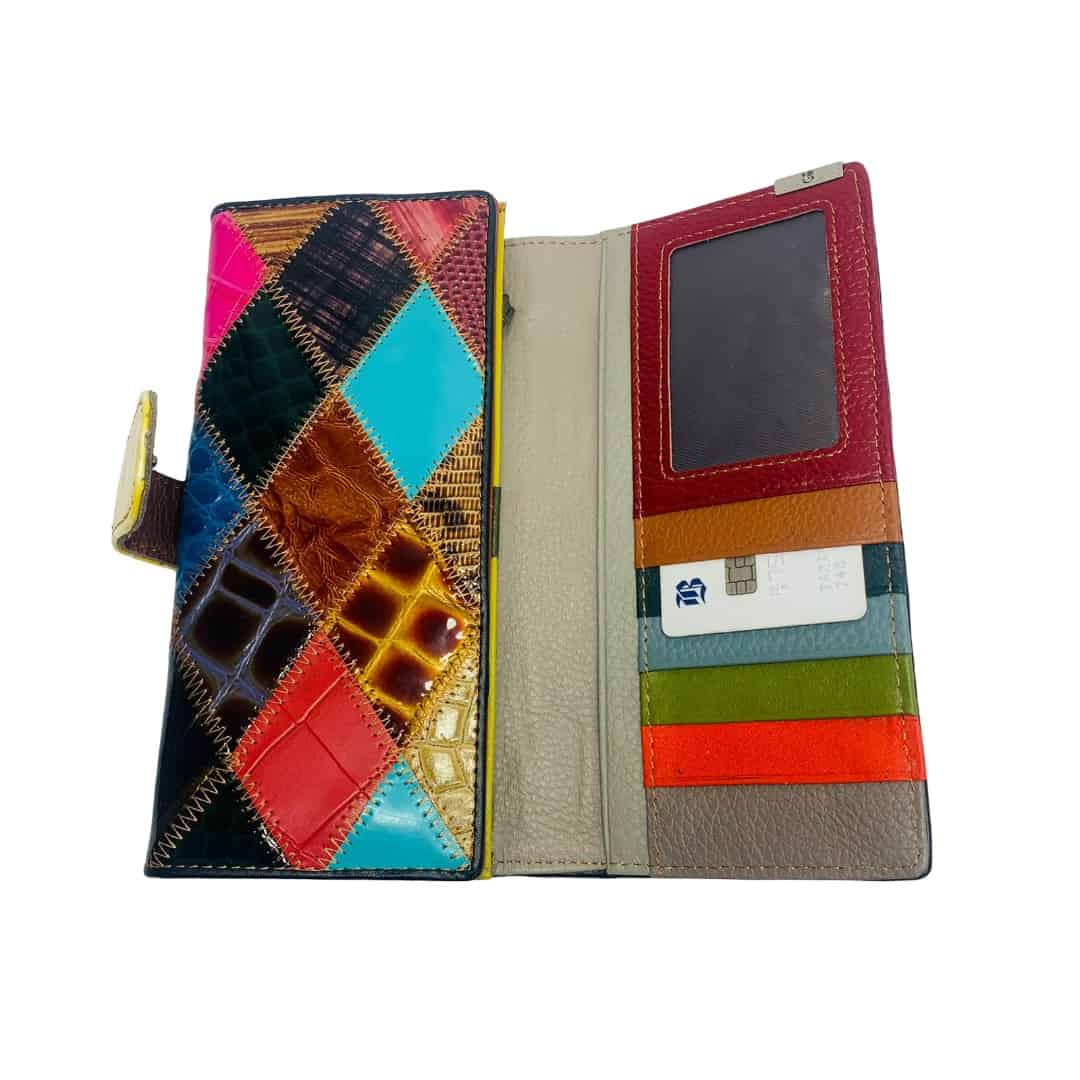 Esta colección de billeteras de patchwork fusiona un diseño artístico audaz con la máxima funcionalidad, ideal para quienes buscan un accesorio con carácter único. Cada pieza presenta una vibrante combinación de texturas y colores en cuero, asegurada con un elegante broche de presión que resguarda un interior sorprendentemente organizado: múltiples ranuras para tarjetas, espacios para fotos o documentos y un compartimento con cierre para monedas o billetes. Es el complemento perfecto para destacar en el catálogo de Tammy’s, ofreciendo ese equilibrio entre el estilo bohemio y la practicidad necesaria para el día a día.