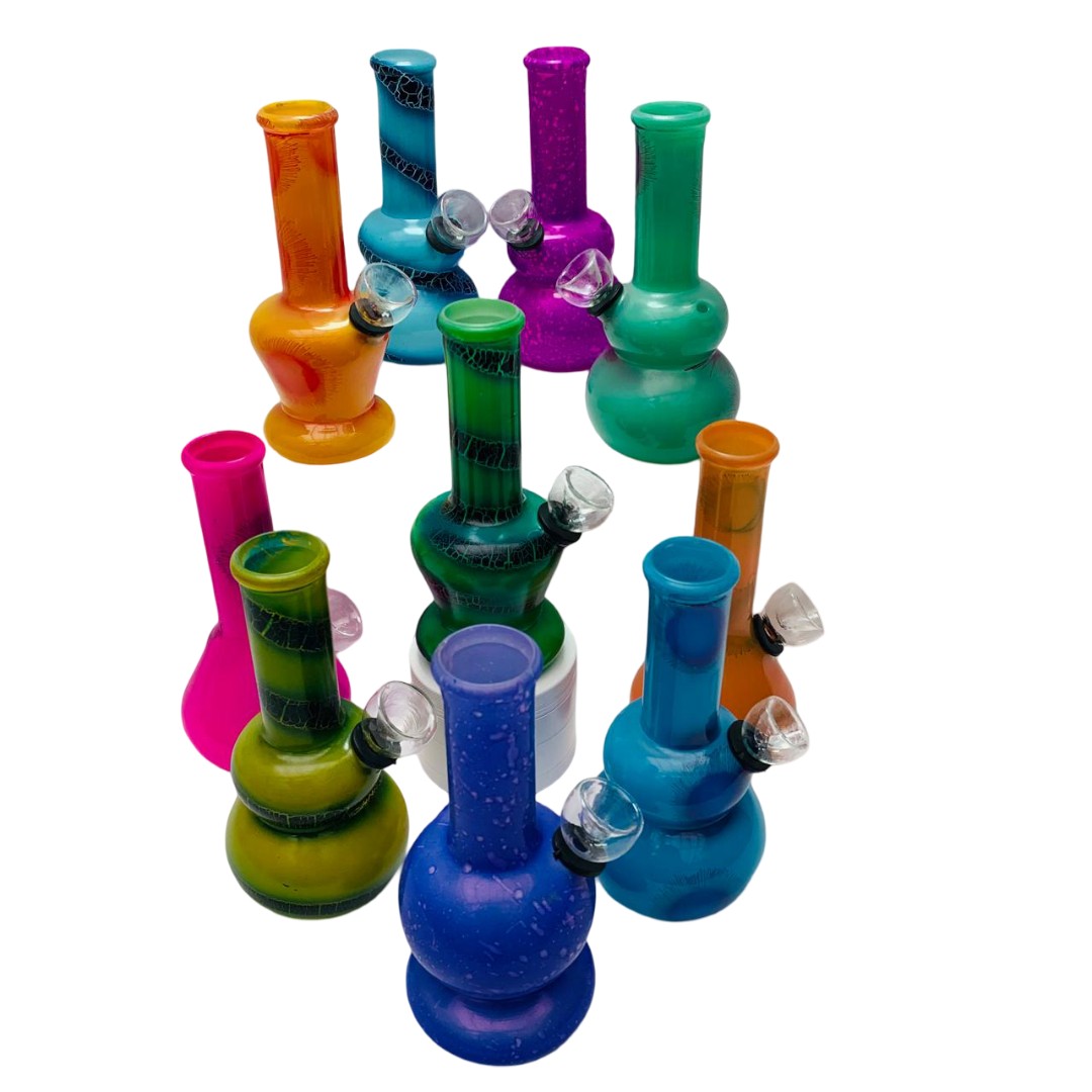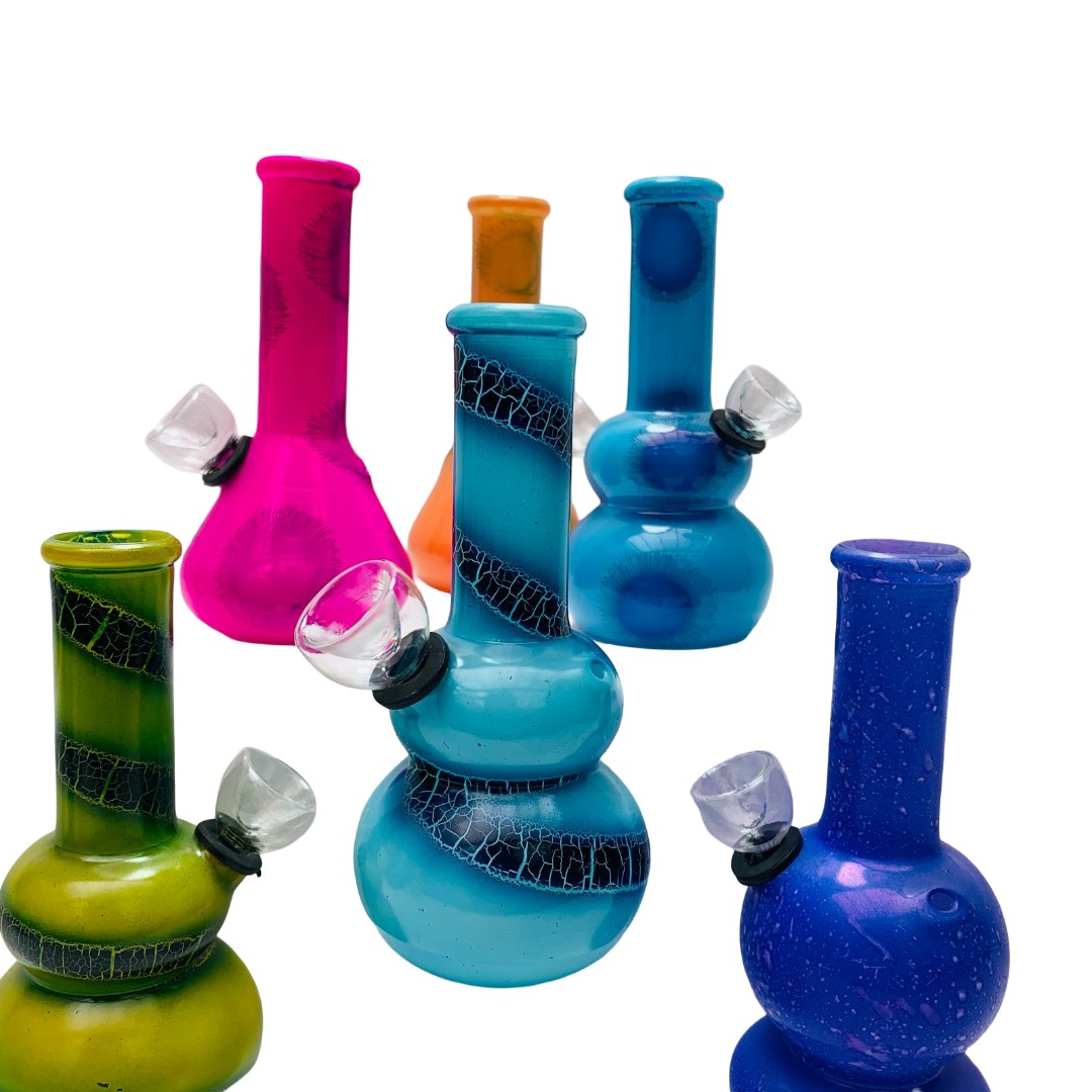 Este Bong de Vidrio de Colores destaca por su diseño vibrante y artesanal, ideal para quienes buscan una pieza compacta con una estética llamativa. Su estructura presenta un cuerpo redondeado y ergonómico que facilita el agarre, mientras que el vidrio opaco está decorado con patrones únicos que incluyen acabados craquelados y espirales en contraste. Disponible en una variada paleta de colores como verde, naranja, turquesa y violeta, este modelo combina la practicidad de un formato portátil con un estilo visual lleno de energía, convirtiéndolo en una opción divertida y distintiva para cualquier colección.