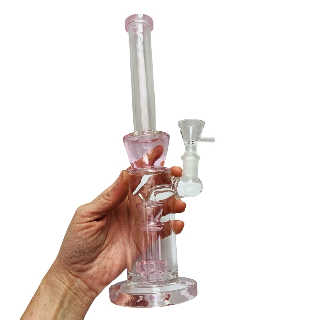 Este Bong de Vidrio Premium destaca por su diseño de alta transparencia y una estructura estilizada que combina elegancia y funcionalidad. Equipado con un potente percolador de árbol interno, garantiza una filtración superior para caladas más suaves y frescas. Disponible en tres vibrantes variantes de color (Azul, Verde y Rosado) en boquilla y percolador, es la pieza ideal para quienes buscan calidad visual y un rendimiento excepcional en cada sesión.