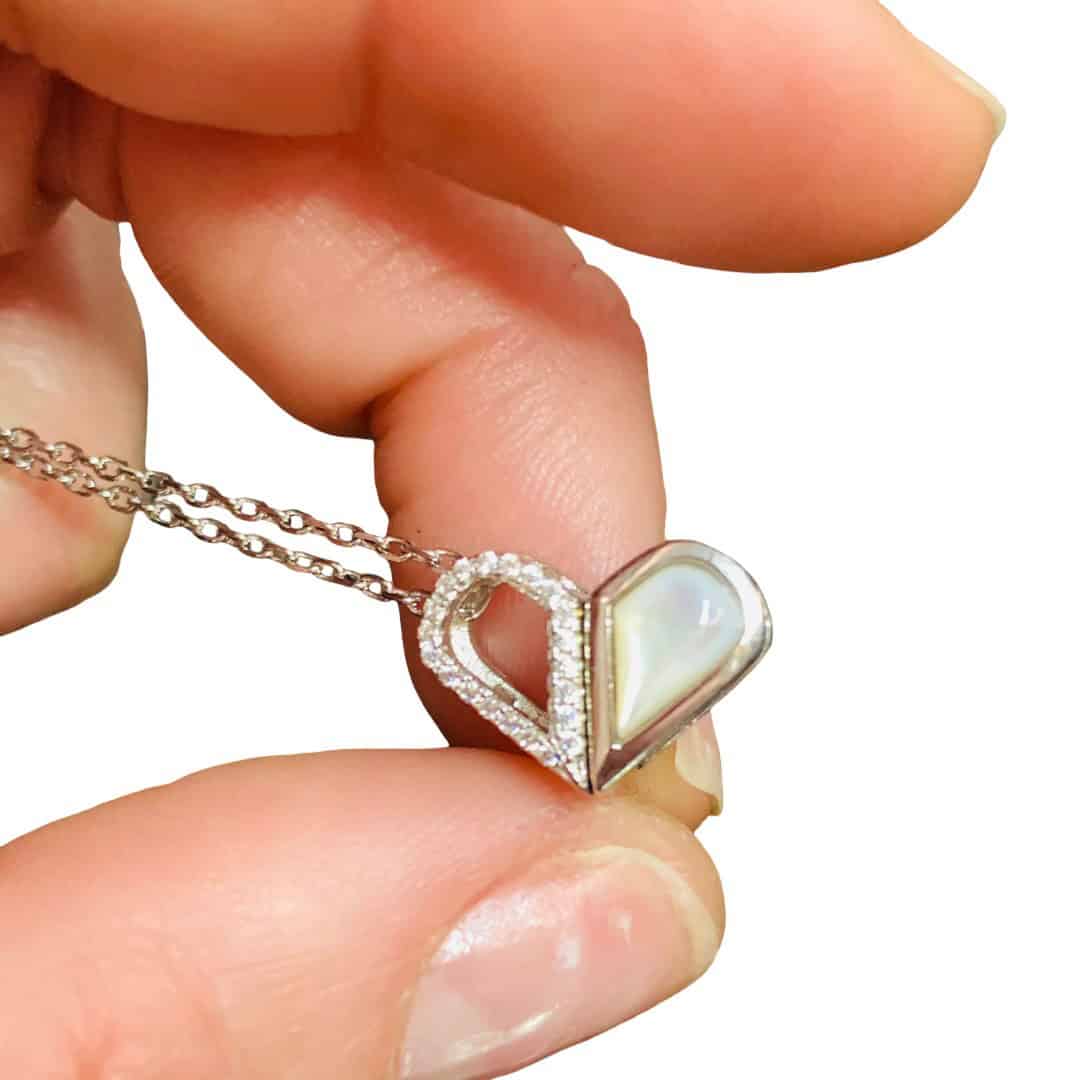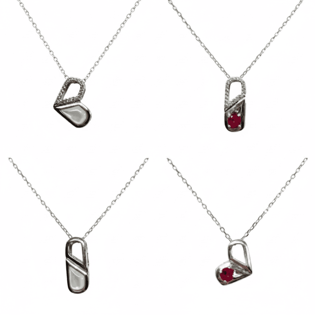 Este innovador collar de plata 925 es una pieza de joyería versátil y sorprendente, diseñada con un sistema giratorio que permite lucir hasta cuatro posturas diferentes en un solo accesorio. Su dije reversible se transforma magistralmente de una elegante forma de cápsula a un romántico corazón, ofreciendo además la posibilidad de elegir entre la delicada iridiscencia del nácar blanco o la intensidad de una piedra roja central. Cada opción está resaltada por un borde de circones brillantes en una de sus caras, convirtiéndolo en la joya perfecta para quienes buscan adaptabilidad y sofisticación, permitiendo cambiar de estilo según la ocasión con un simple movimiento.