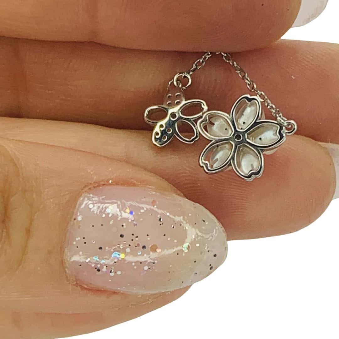 + Envío gratis sobre $50.000Este delicado collar de plata 925 presenta un diseño doble de inspiración floral que combina texturas y brillos de forma excepcional. La pieza central es una flor principal con pétalos de nácar (madreperla) que aportan un lustre iridiscente y natural, acompañada a su lado por una flor más pequeña de silueta calada y adornada con circones brillantes. Esta armoniosa composición, unida a una fina cadena de eslabones, crea un accesorio femenino y sofisticado, ideal para quienes buscan una joya que capture la delicadeza de la primavera con un acabado elegante y atemporal.