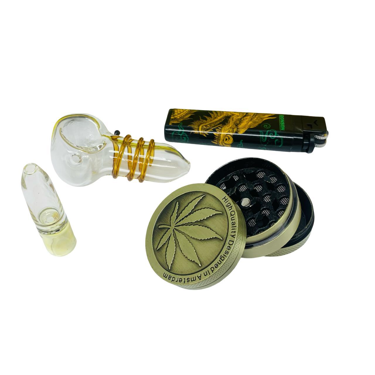 Pack Parafernalia Amarillo Regalo, Mini Bong, Moledor, Bandeja Y Mas