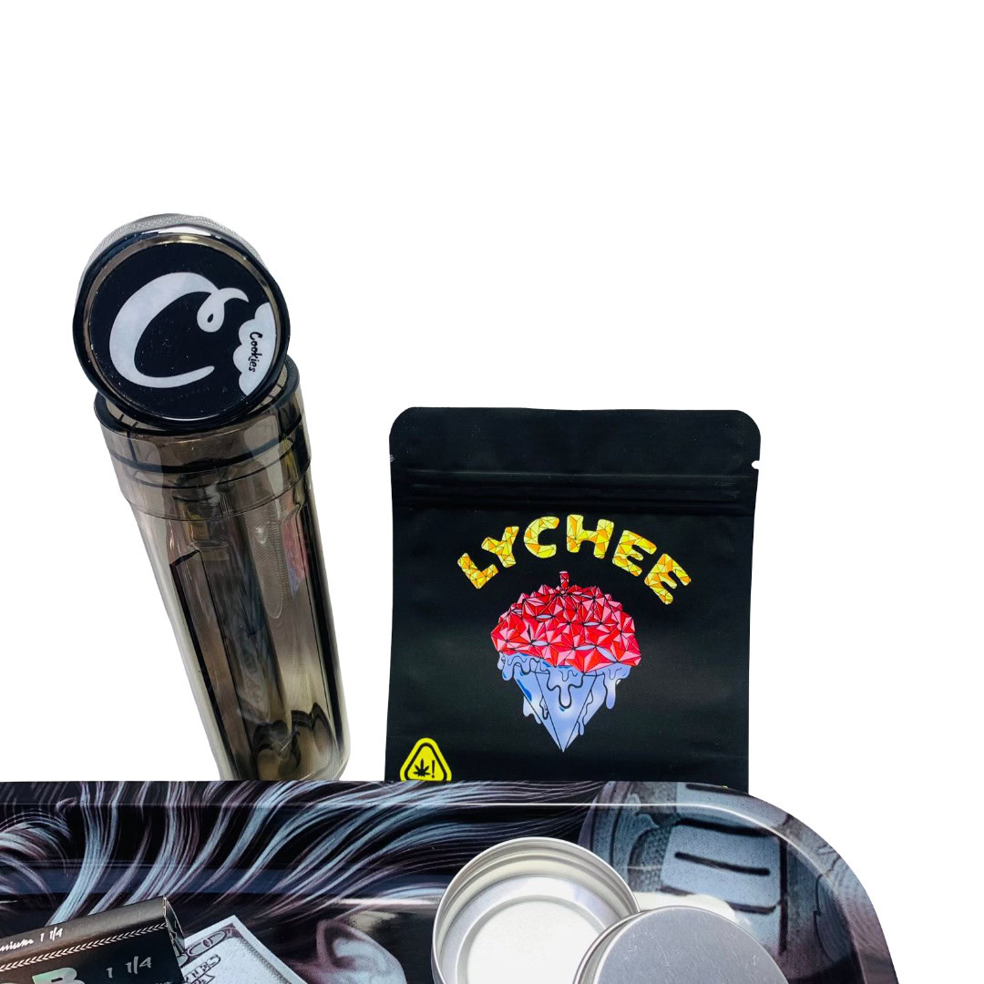 Este Black Pack de Parafernalia es la personificación de la sofisticación y el misterio, ideal para quienes prefieren accesorios con un carácter fuerte y elegante. El conjunto destaca por su bandeja metálica de gran formato con un diseño artístico de alto contraste, acompañada de una pipa de silicona con un patrón de calaveras en blanco y negro que le otorga un toque rebelde. El kit se completa con un moledor metálico negro de alta resistencia, un práctico contenedor porta-rolado ahumado, papelillos del color del pack  y un empaque hermético “Lychee”, ofreciendo una colección monocromática impecable que combina durabilidad con un estilo indiscutible.